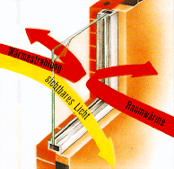 erheblich (bis zu 80 %) gemindert. Ein erträgliches Raumklima als Folge dieser Vorsorge erhält das Wohlbefinden und die Leistungskraft der in diesen Räumen arbeitenden oder wohnenden Menschen. Die fast totale